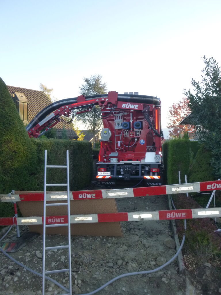 Einsatz Saugbagger bei engen Platzverhältnissen am Gartenweg, Rischerstrasse -